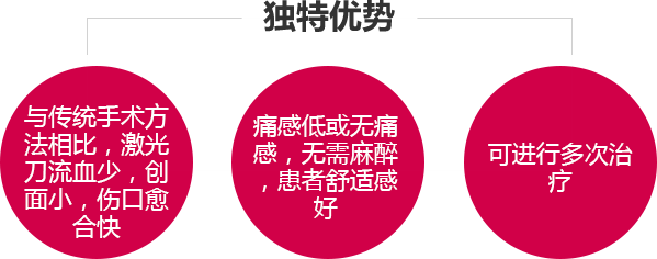 在可控的深度内,产生65℃左右的高温,治疗过程无创伤,无感染风险,治疗更舒服及恢复期短。